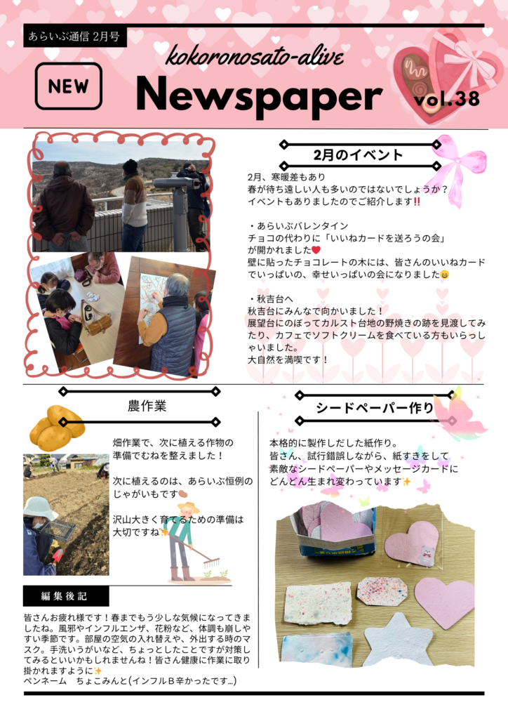 心の里あらいぶでは、毎月の活動内容を利用者さん視点でまとめた